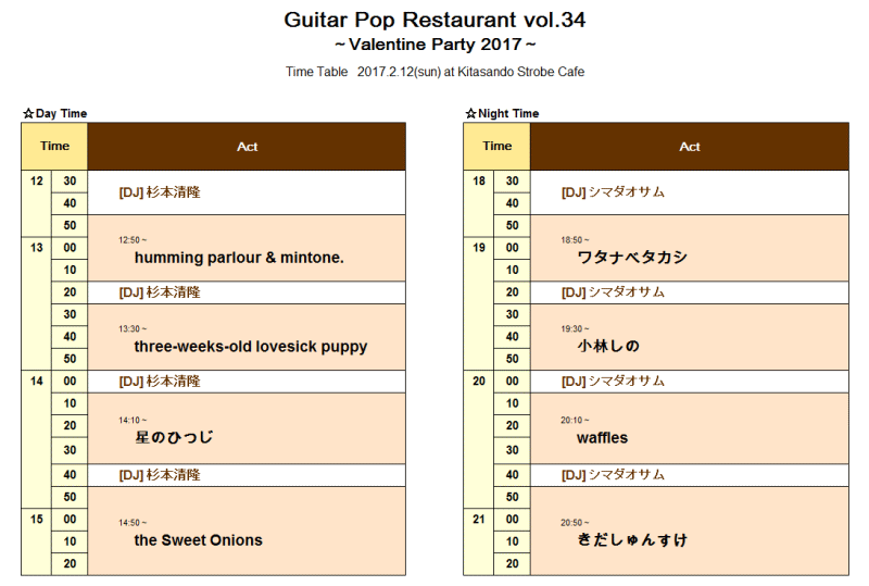 2017年2月12日(日) 昼の部:OPEN 12:30 / START 12:50 夜の部:OPEN 18:30 / START 18:50 |