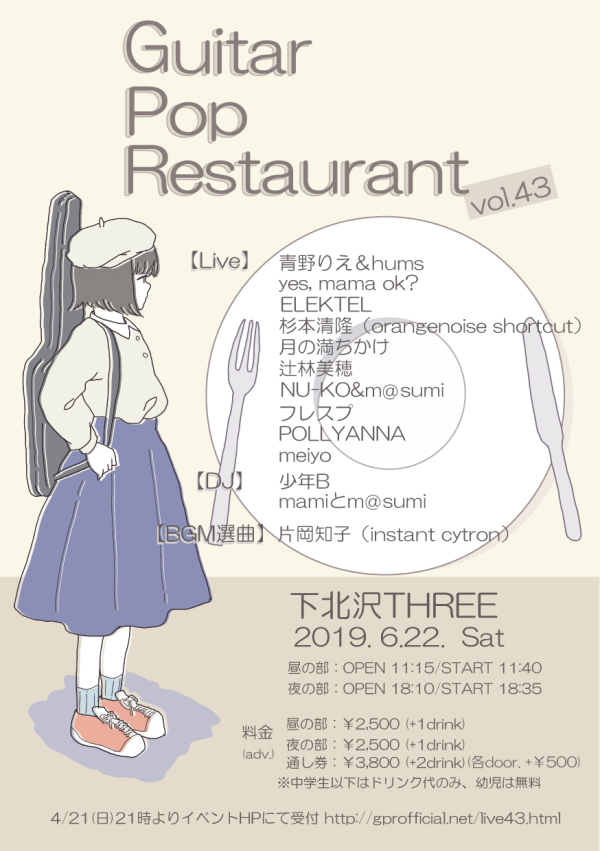 adv. 昼の部:¥2,500 (+1drink) 夜の部:¥2,500 (+1drink) 通し券:¥3,800 (+2drink) (各door. +¥500) ※中学生以下はドリンク代のみ、幼児は無料 |