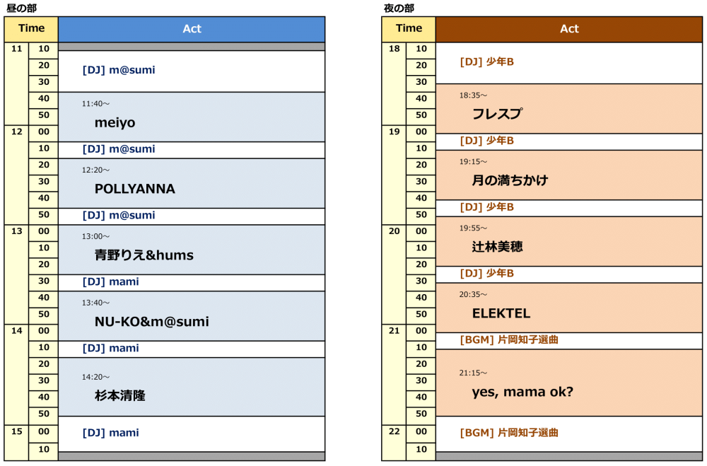| LIVE: | yes, mama ok? / ELEKTEL / 月の満ちかけ / 辻林美穂 / フレスプ |
