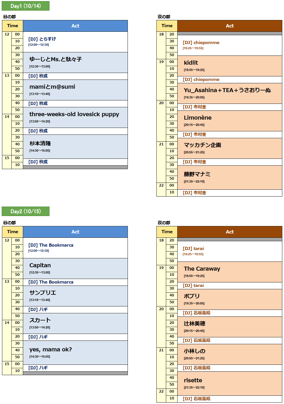 | 【昼の部】 | |||||||||||